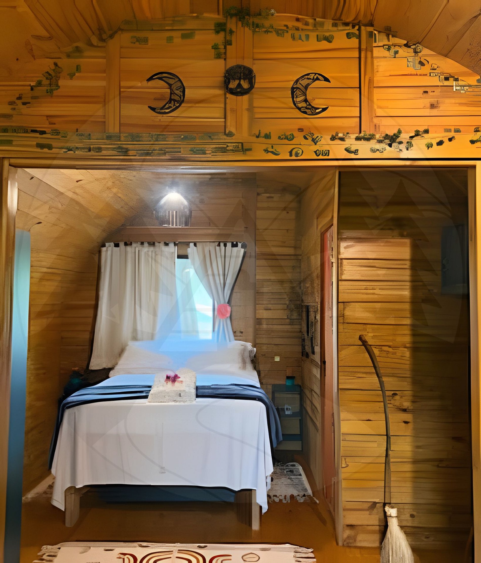 Cabana circular com curvas que lembram antigos tonéis de vinho e o ventre da Terra, te convida a um mundo onde a natureza guarda segredos e a magia paira no ar. Essa morada evoca o ciclo da vida, o fluxo da energia do encantado. Cercada por um bosque vivo, um lago tranquilo é refúgio de bruxas, fadas, elfos e gnomos. Um santuário místico perfeito para desacelerar, sonhar acordado e viver a experiência onde o real silencia e a magia desperta. Venha sentir a ancestralidade encantada da cabana