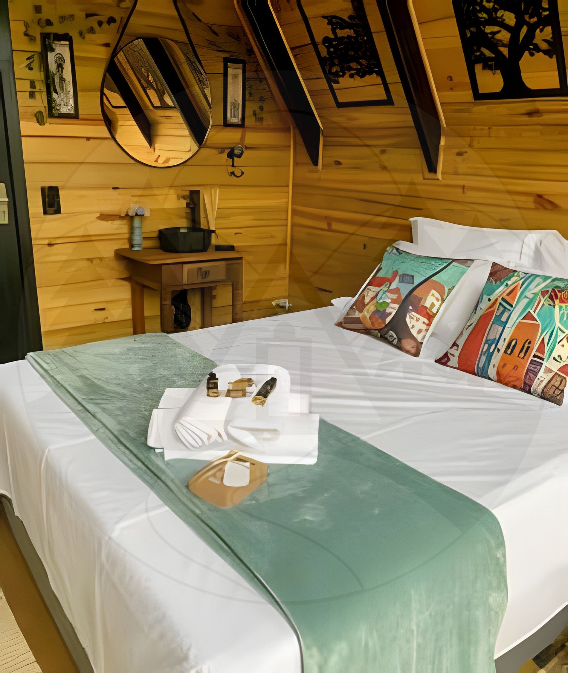 Estadia inclui como cortesia o café da manhã e o enxoval de cama e banho para 2 pessoas. Sensíveis a claridade sugerimos levar tapa olho para dormir.