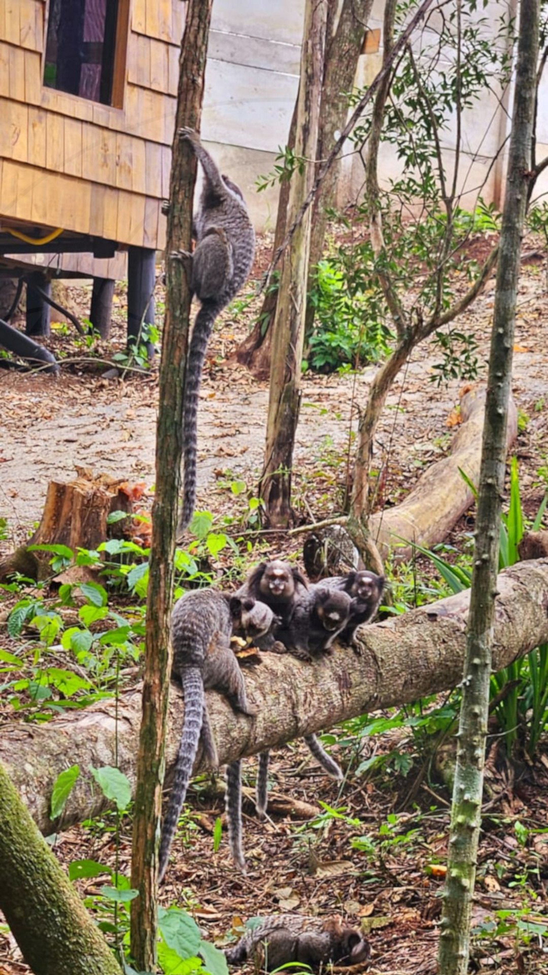 Estamos dentro de um residencial fechado, o nosso lote é seguro e privativo integrado ao bosque. Temos quatro opções de hospedagem no mesmo lote, ambas com vaga independente para o carro e área externa individual.