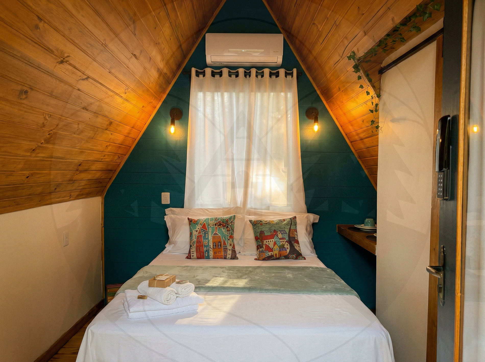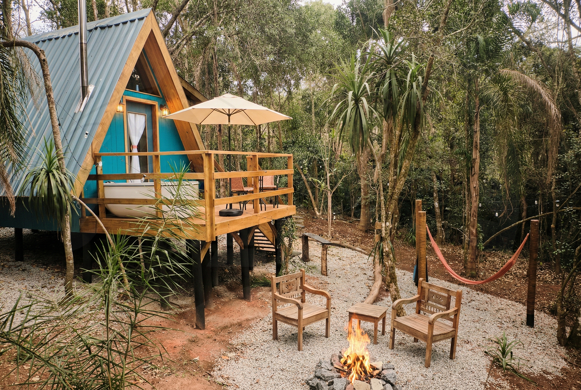 Entre árvores e o perfume da mata, nossa cabana é um convite ao amor, à pausa e à conexão. Com charme rústico, lareira e uma banheira no deck com vista para o bosque, cada detalhe foi pensado para criar momentos inesquecíveis, tudo privativo.
